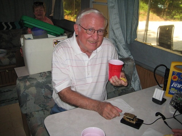 Bobby, W4BLB, stopped by with his wife, Jean, during the FOBB. You can tell he was really putting them in the log with a lemonade and cookie in his left hand..!!