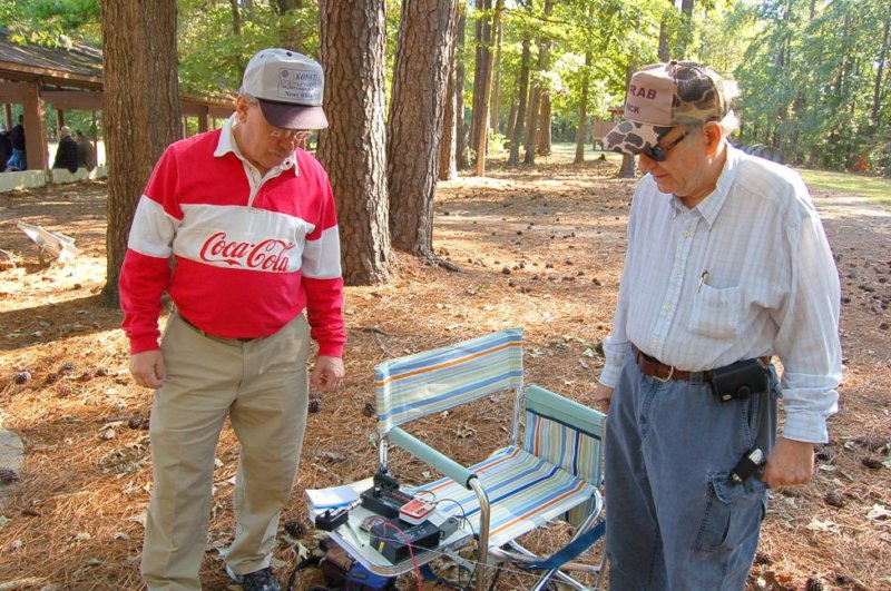Two Mississippi boys. Paul, W4KLY and Pickett, AD4S checking out Pickett's new AA0ZZ keyer from 4States QRP.