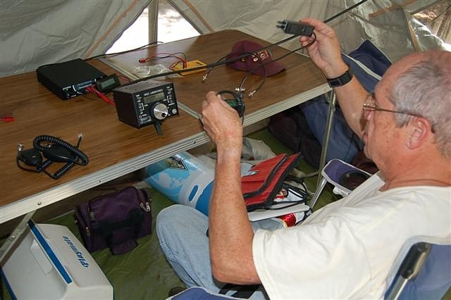 "Sparky" Stafford, W4QO, operating QRP with his Index QRP Plus. This was the backup to his backup rig..!!