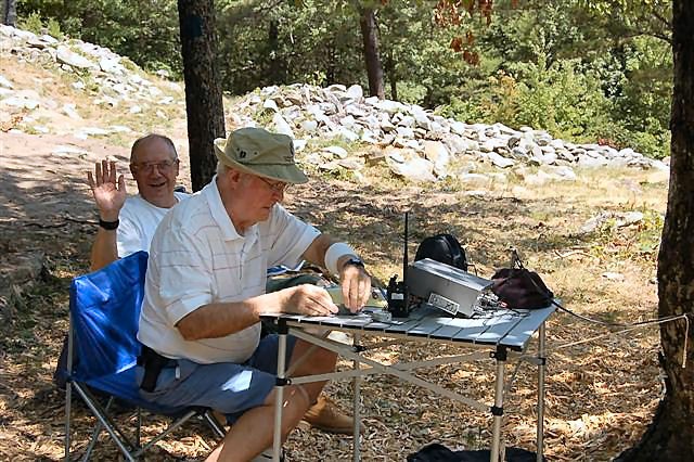 Jim, W4QO, and Bobby, W4BLB, operating the "Flight of the Bumblebee" from the famous "Magic Rocks" an 850 foot long rock wall that runs across the top of Fort Mountain, Georgia.