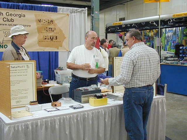 Les talking to Mike, KO4WX. Russ is working the "show and tell"
