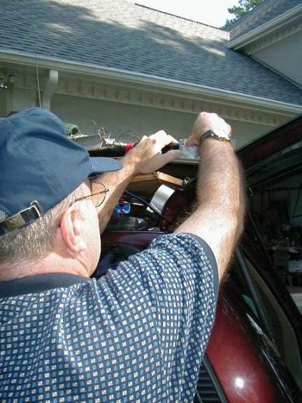 Good old Duct Tape. Sam discovered that the cap had fallen out of his PLPV antenna rod and all the elements were trying to come out. |