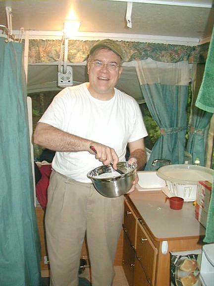 Scott was in charge of breakfast Saturday morning and what a feast he put on. Eggs, bacon, pancakes, coffee and juice. I think there was more but I didn't keep notes. |
