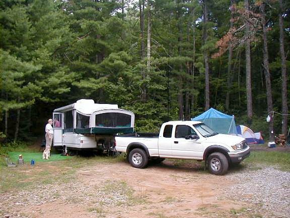 Joining Scott in this adventure were Mike, KO4WX, Sam, AE4GX and Pickett, AD4S. Our trip extended from early Friday, July 25th through Sunday July 27th. Pickett and Sam (with Sam driving) went early to secure one of the few good campsites in this part of the Forest. These are all primitive sites so we had to bring everything we needed for 3 days.