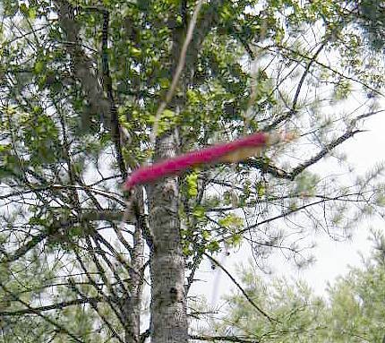 Sam hanging the first antenna, his Norcal doublet. The sun was right in his eyes but he made a perfect shot up about 50 feet. |