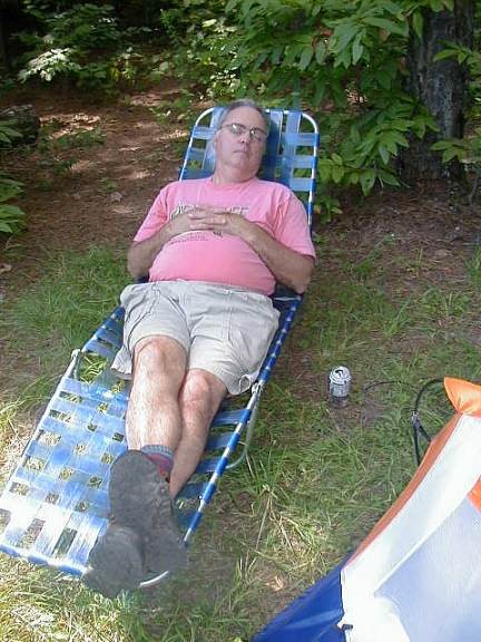 ![]() Mike finally arrived with Scott and set up his sleeping tent under the NoGa banner. He was sure that no bears would bother him there. |