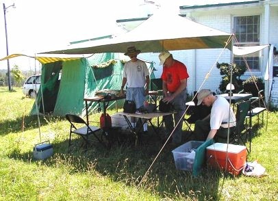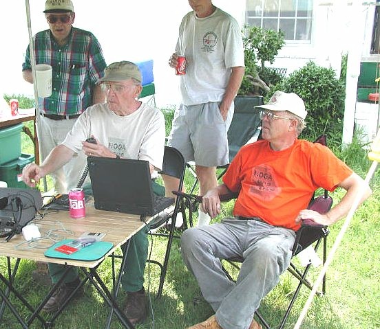 Joe, W4JHR and Dick, K2UFT. The derrière may be Jim, AD4J. |