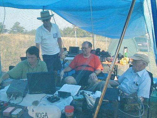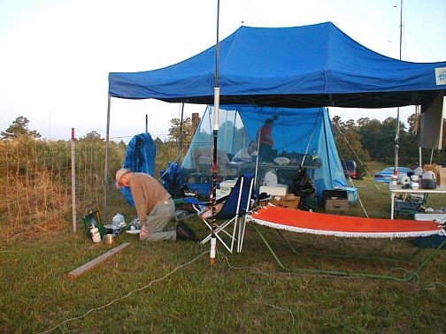This annual event was held on the extensive property of Dr. Long, a friend of Russ, AE4NY. The area was complete with lakes, cows, pastures and forests. The Long's were good enough to let us camp by their house and use their facilities. They event served the intreped NoGaNaughts a generous helping of water melon.