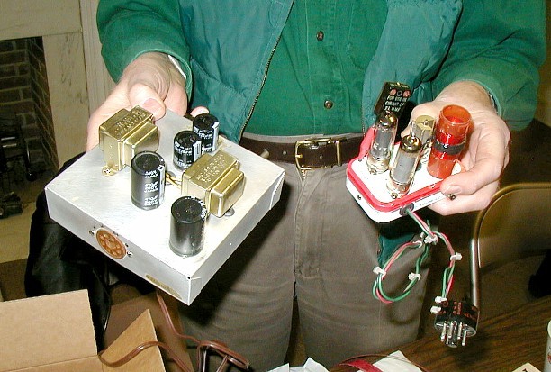 ![]() John, WB4GLJ, from Columbus shows off his punch set used to make Manhattan style solder pads. |