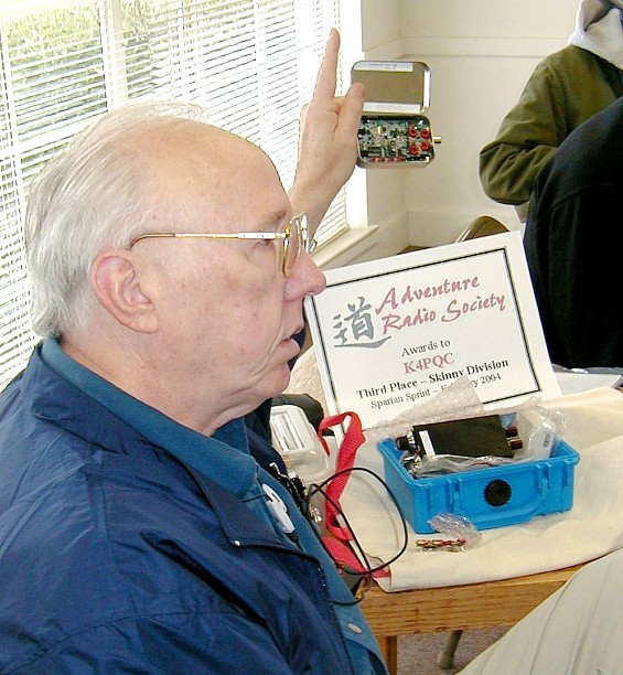 ![]() Norm, WA4ZXV, with his AZ ScQRPions paddles. We used them later at FYBO. Norm and Jim, AE4DT are working on some engineering changes to make the levers a little more stable. |