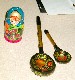 ![]() Oleg Borodin, RV3GM, our friend in Lipetsk, Russia sent the club some gifts to help us remember his appreciation of our help in getting his QRP club a K2. The doll is "Matryoshka" and Oleg asked that we display her at every meeting. The hand made spoons were nice also. |
