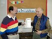 ![]() John, AB4GK, receives the HRO gift certificate door prize from Russ, AE4NY, our relentless door prize acquirer. |