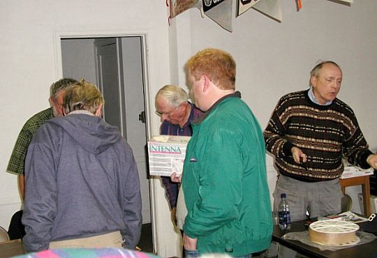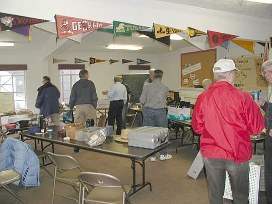 ![]() The 3 guys at the left are trying to figure out if they can get all 3 of Marvin's scopes past the xyl. On the right, Ed, N4XY, is trying convince someone that everyone needs a roll of 10,000 resistors. |