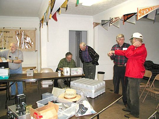 ![]() Jack, K5FSE, flanked by Tom, K4TJD and Jimmy, AE4DT. Jack's show and tell was a really old piece of equipment that he built. Sam, AE4GX, provided a description. |