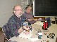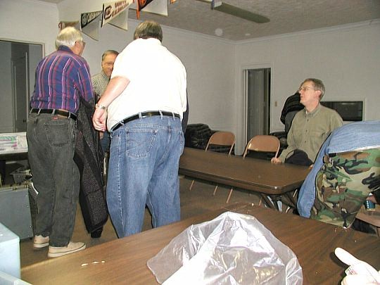 ![]() On the right, Tom, K4TJD, had some really nicely done HB items. Pictures later. Don't know why James, K9GKB, has fallen asleep. |