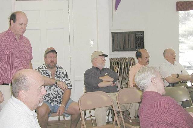 ![]() L/R Phil, K4PQC, Jack, K5FSE, Jim, W4PDZ and moderator, Pickett, AD4S... smiling because Joe, W4JHR, has acquired parts to kit another 100 NoGaWaTTs. These back lit shots are tough to get to where you can really see who is in attendance. |