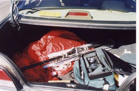 Like many of you I try to find the time to do as much QRPing as possible given the schedules of work and family. Although I have been a ham on and off since 1957 I never have been active during a sunspot cycle. I was bound and determined to be active this cycle and find a way to maximize my operating time. The only way possible for me to increase my operating time was at lunch time near work. Since like many of you I work in an urban environment I am faced with lots of concrete. My one restriction was not to have a BIG antenna on the car permanently. Bob Edwards W4ED showed the North Georgia (NOGA) QRP group a portable setup for his SLA vertical that showed promise but it did require a car and the antenna had to be adjacent to the car. He used a frame/stand that was held steady by a car tire resting on the antenna support frame. I was looking for something a little more flexible. Something that could be operated from a car, in the event of rain or bad weather but, also could be operated from anywhere it could be hauled. I like to bike ride and trail hike so I was looking for a method of setting up an antenna that was independent of trees and other local supports.
