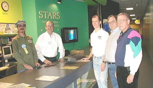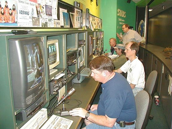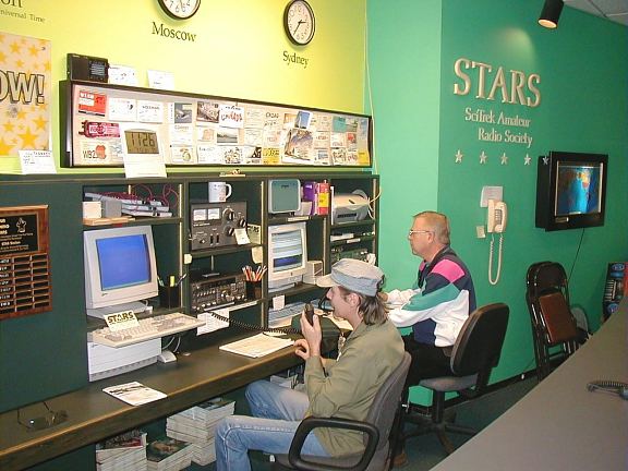 also graciously helped us with this project . NoGa has been looking for a lasting and productive project to apply their excess kit funds to and Pickett, AD4S, proposed this project and arranged for the component acquisition and building/installation completion. NoGaNaught, Joe, W4JHR, volunteered to build the basic K2 and coordinate the installation of the optional components. Joe also built the SSB option. Assisting in the option building from NoGa were Guy, AF4MN, who built the antenna tuner and Tim, WD8DRM, built the audio filter. David, KG4LSK, from ARC built the noise blanker. The construction work was of the highest caliber and everything worked the first time it was powered up. The Sci-Trek Amateur Radio Station (STARS) has it's own call sign; W4WOW. Click here to go to the Sci-Trek web site and look for the STARS link on the bottom of the "Permanent Exhibits" page. Click on the small picture to get the "big picture" |